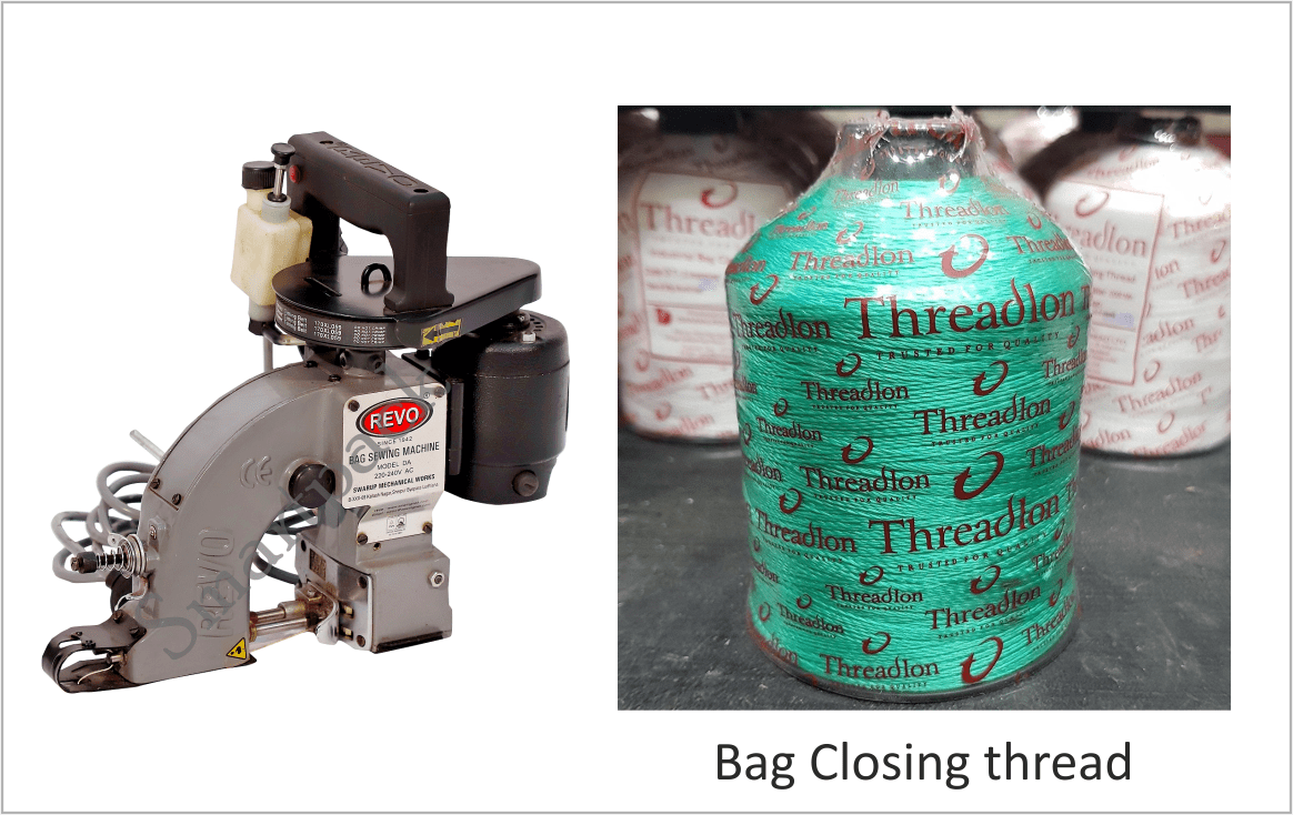 This machine also features reinforced feed mechanism consisting of wider presser foot and feed dog with a bigger throat plate than conventional double chain-stitch bag closing machines for smoother, even and better looking plain and folded top closures. Revo® double thread bag-closing machine is ideal for bag closing applications requiring a two thread, safer closure. This machine is more versatile but just as dependable as a stationary bag closer. For the geo-textile industry, this machine offers a durable and tight stitch to meet required specifications.