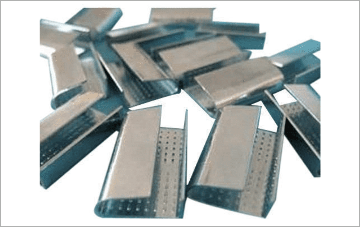 PET/PP strap clips are available for 12 mm, 16 mm, and 19 mm straps, with a seal thickness of 0.7–0.9 mm. Designed for strong and secure sealing, these clips ensure reliable fastening for industrial strapping and packaging applications.
